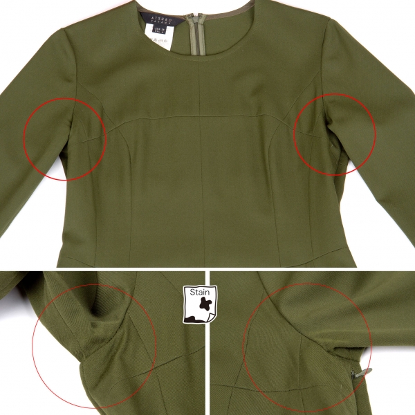 【SALE】アツロウタヤマATSURO TAYAMA ウール切替ワンピース カーキ38