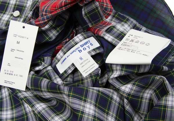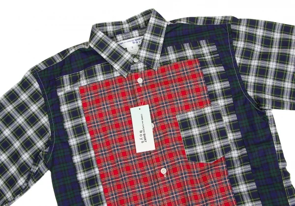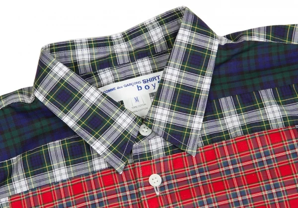 新品!コムデギャルソンシャツボーイズCOMME des GARCONS SHIRT boys タータンチェックフレーム切替シャツ 赤青緑他M