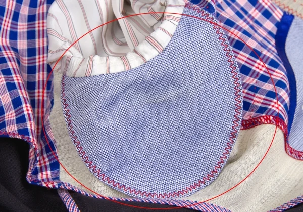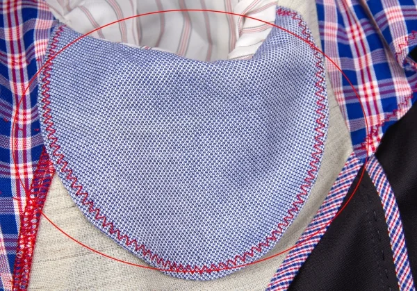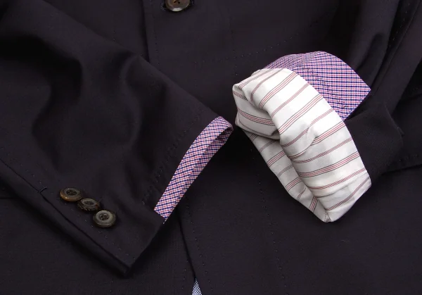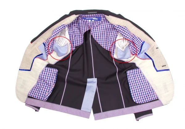 毛100% 背裏 綿100% 袖裏 キュプラ100% 前裏(1) 綿100% 前裏(2) 毛65% 綿35% 別布 綿100%