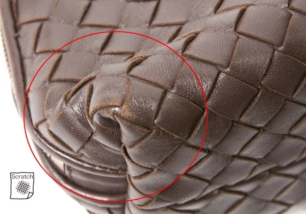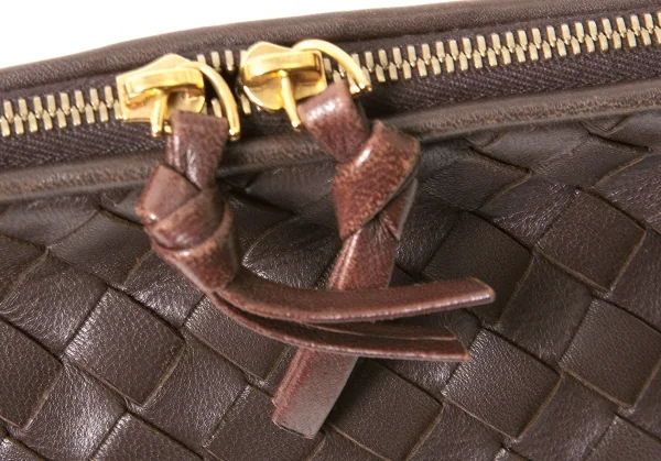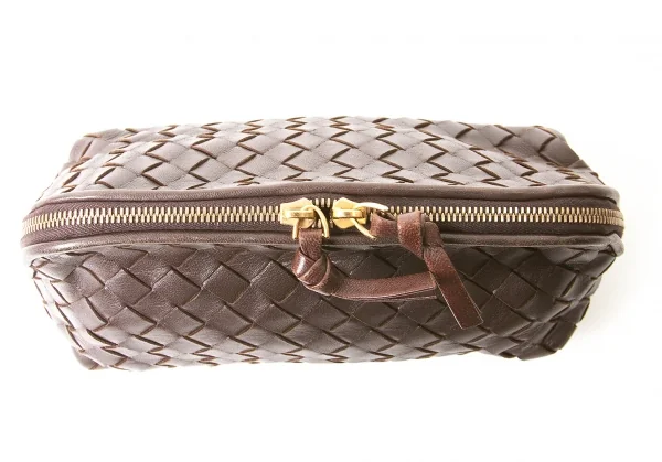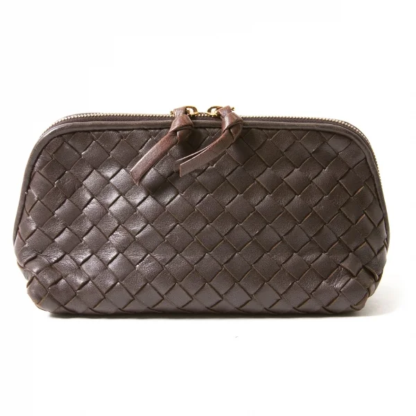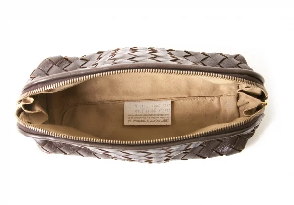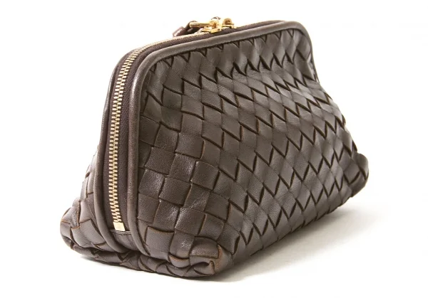 【SALE】ボッテガヴェネタBOTTEGA VENETA イントレチャートレザーポーチ 茶