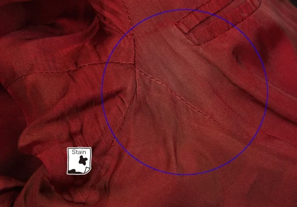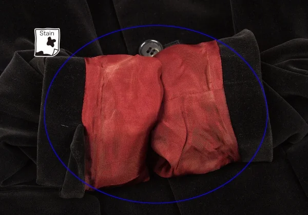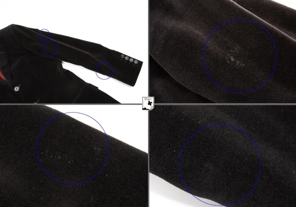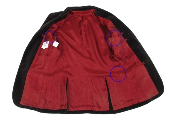 襟裏、袖裏に汚れあり。左袖に薄汚れあり。裏地に薄シミ、脇下に擦れ薄汚れあり。(写真参照)クリーニング済み。