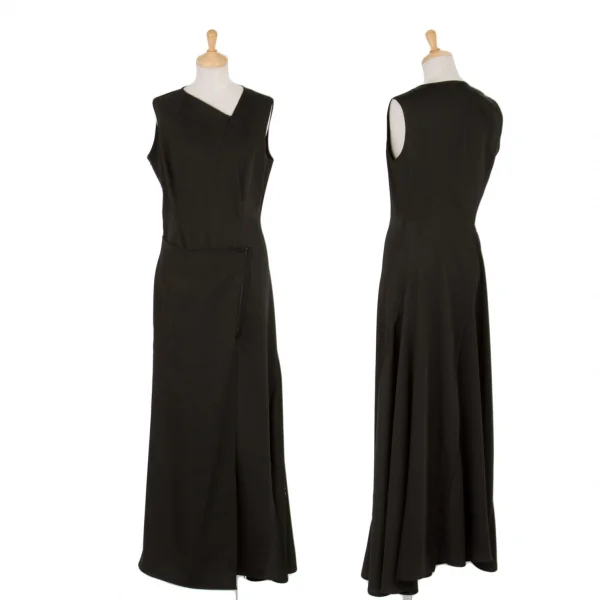 アツロウタヤマATSURO TAYAMA アセテートポリジップデザインワンピース 黒38