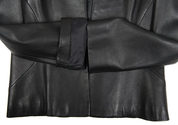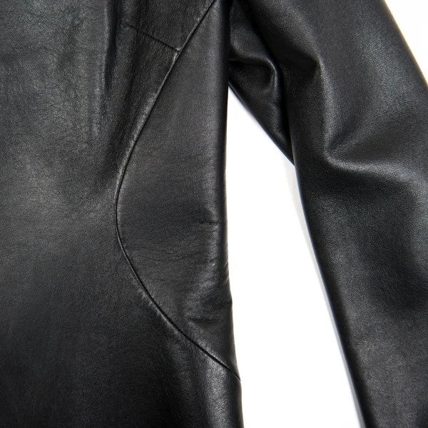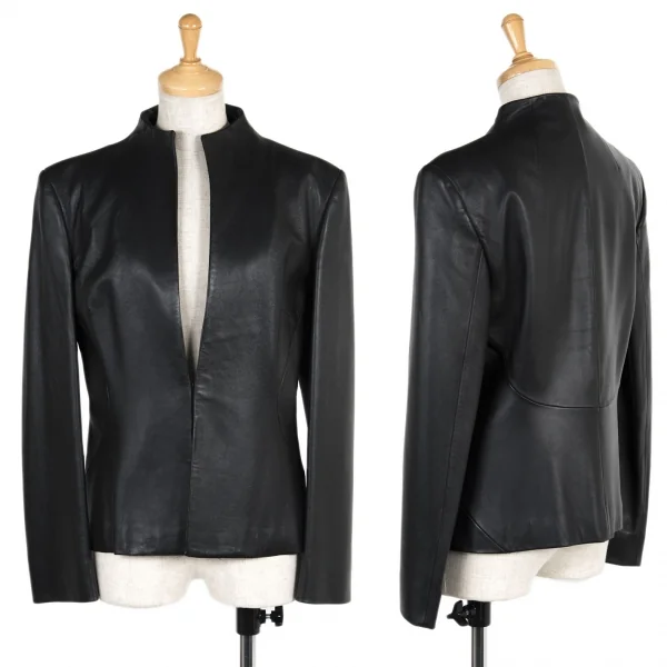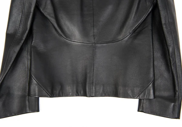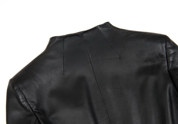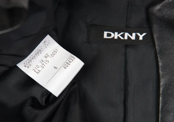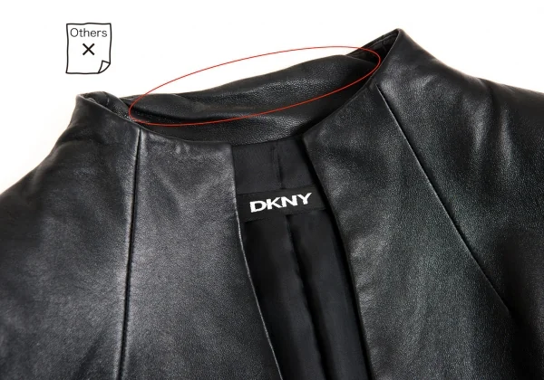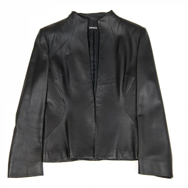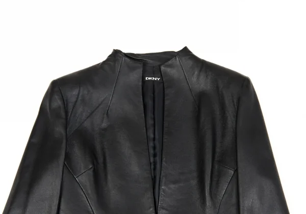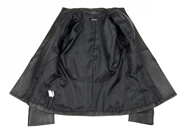 ダナキャランDKNA ノーカラーラムレザージャケット 黒6