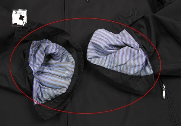 首回りに薄汚れあり。袖、前身頃裾に擦れキズあり。袖裏にシミ、変色あり。裏地に点シミあり。(写真参照)その他に目立ったシミ、汚れ、ほつれ等なくいい状態です。クリーニング済み