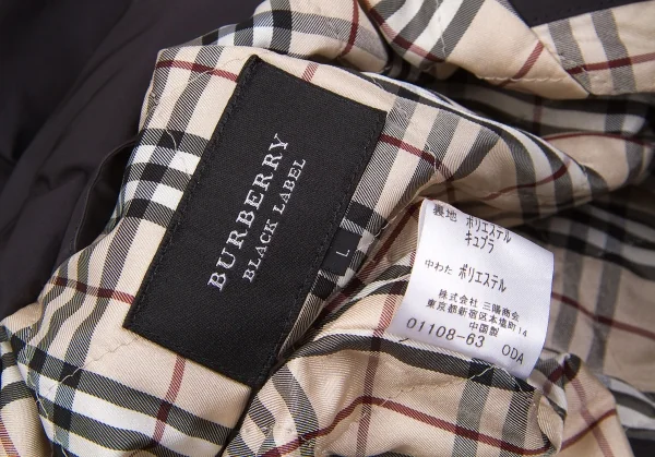バーバリー ブラックレーベルBURBERRY BACK ABE 裏ノバチェック中綿ジップアップジャケット 黒L
