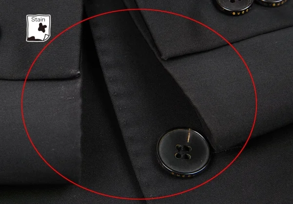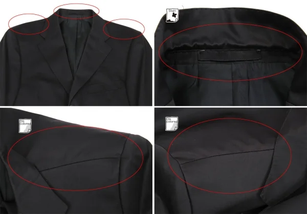 ジャケット:襟裏に汚れ、肩に少しヤケあり。袖先に擦れ薄汚れあり。 パンツ 右足にシミ、後ろウエストにお直し跡あり。(写真参照)目立ったシミ、汚れ、ほつれ等なくいい状態です。クリーニング済み