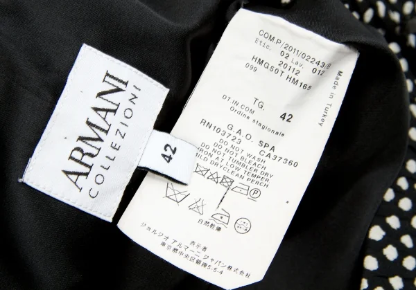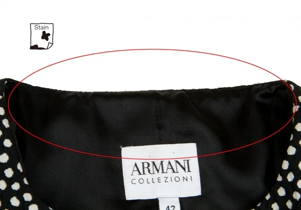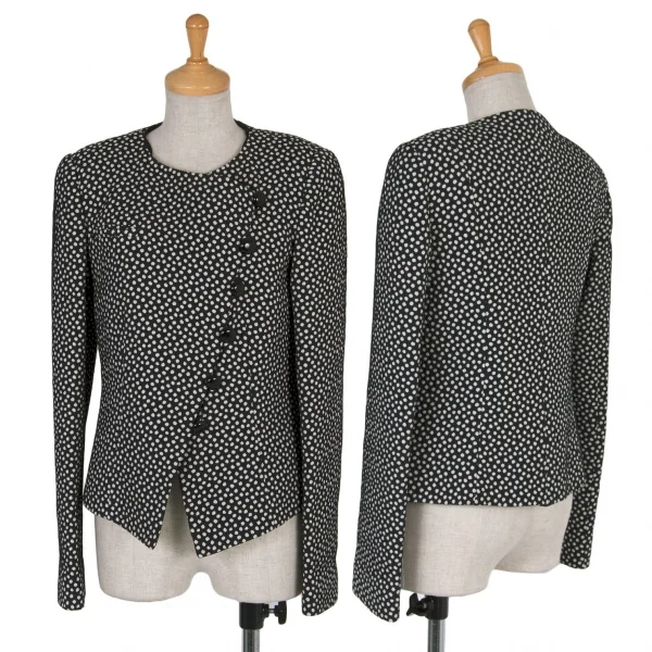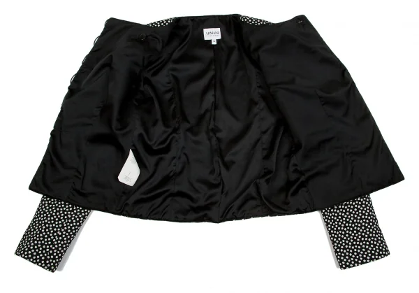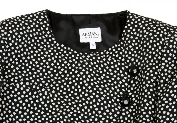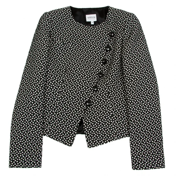 アルマーニコレツィオーニARMANI COLLEZIONI ドットジャガードシワ加工ノーカラージャケット 黒白42