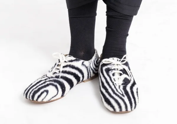 【SALE】コムデギャルソンCOMME des GARCONS 起毛ゼブラ柄フラットシューズ 白黒24