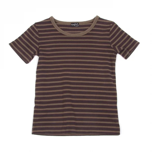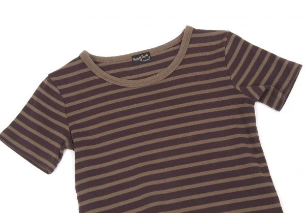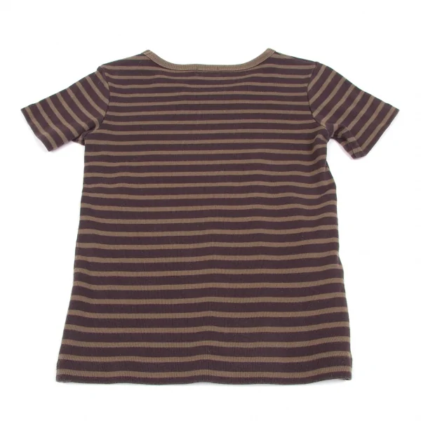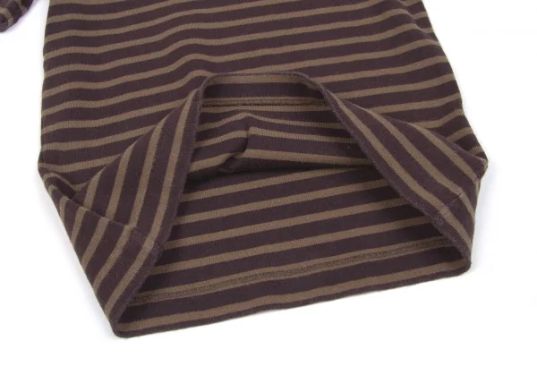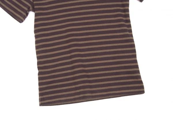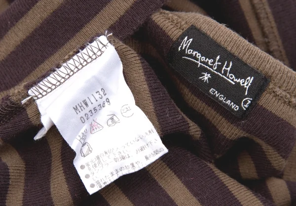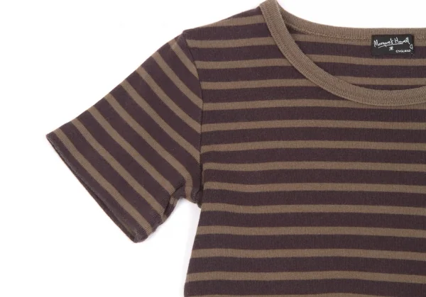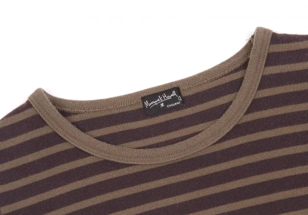 【SALE】マーガレットハウエルMARGARET HOWELL ボーダーコットン厚手Tシャツ 茶ベージュS位