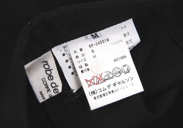 【SALE】ローブドシャンブル コムデギャルソンrobe de chambre COMME des GARCONSウールギャバクロップドパンツ 黒M