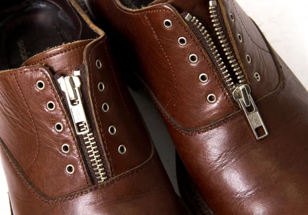 コムデギャルソンオムCOMME des GARCONS HOMME フロントジップレザーシューズ 茶24