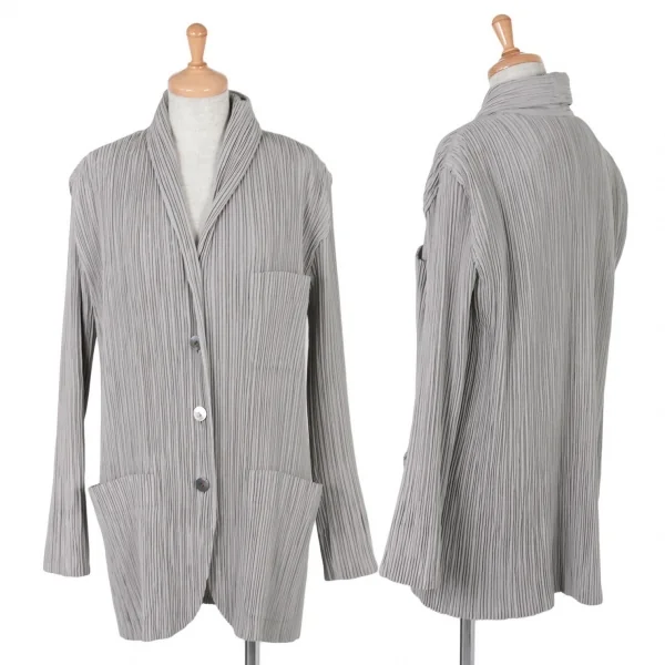 【SALE】イッセイミヤケISSEY MIYAKE プリーツショールカラージャケット グレーM位