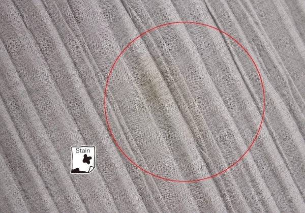 品質タグありません。前ポケットにシミあり。袖裏に汚れあり。(写真参照)プリーツ谷全体に少し変色あり。その他に目立ったシミ、汚れ、ほつれ等なくいい状態です。クリーニング済み