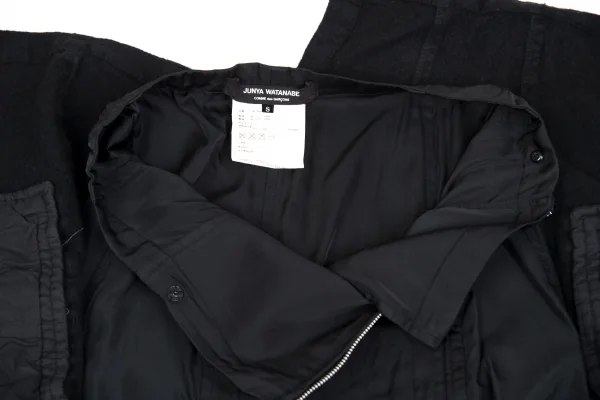 ジュンヤワタナベ コムデギャルソンJUNYA WATANABE COMME des GARCONS 縮絨ウール二重ミリタリーポケットデザインスカート 黒S