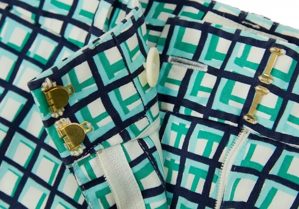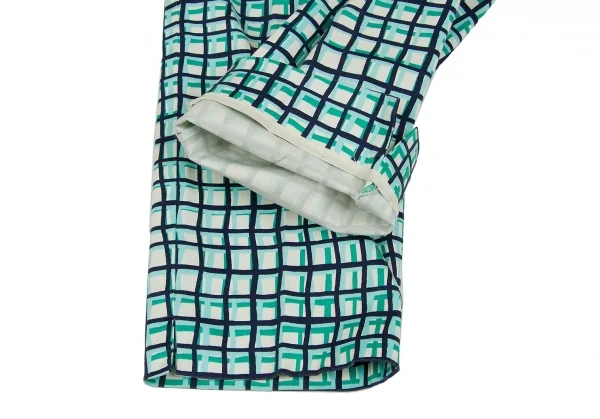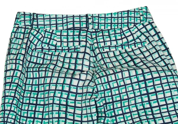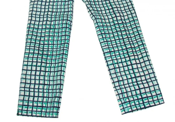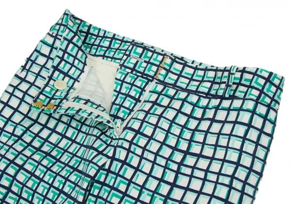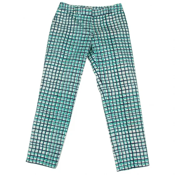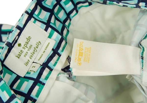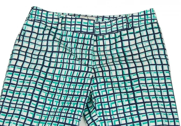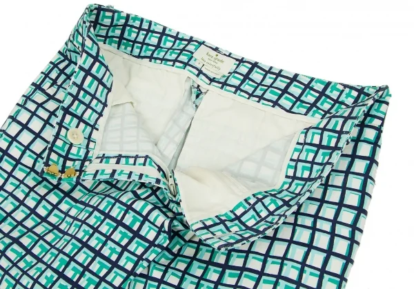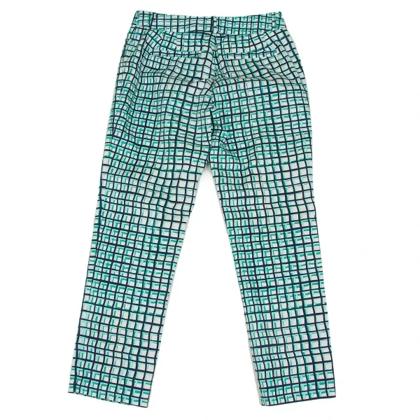 ケイトスペードKate Spade チェックプリントクロップドパンツ 白青水色2