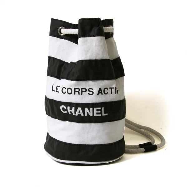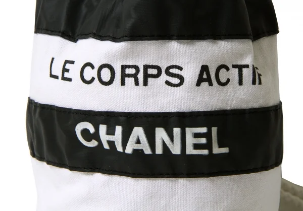 シャネルCHANEL ボーダーノベルティ巾着 白黒