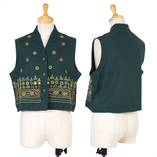 【最終値下げ】ジジリgigli ミラー装飾刺繍ベスト 深緑他S