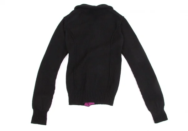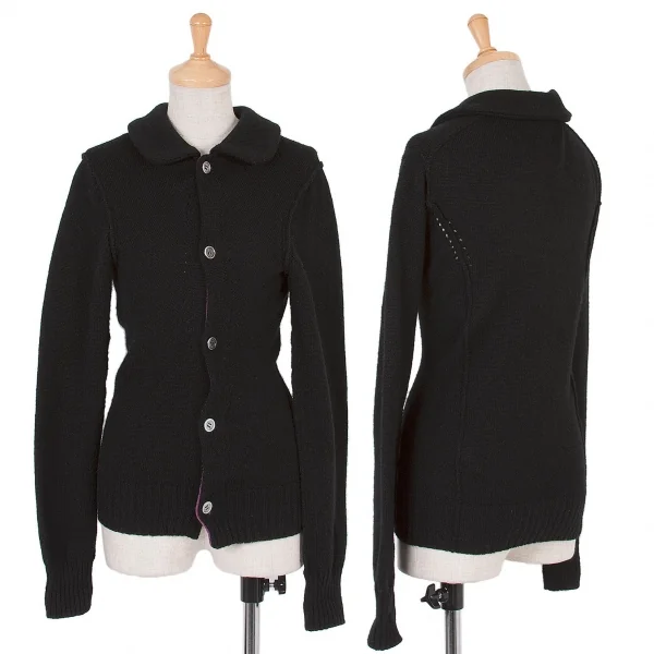【SALE】ジュンヤワタナベ コムデギャルソンJUNYA WATANABE COMME des GARCONS ウール丸襟ニットカーディガン 黒紫S