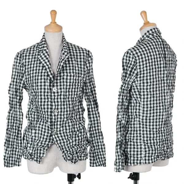 ジュンヤワタナベ コムデギャルソンJUNYA WATANABE COMME des GARCONS ポリシルクギンガムチェックシワ加工ジャケット 黒白S位