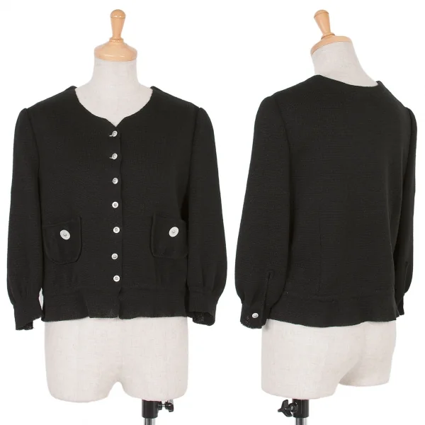 ミナペルホネンmina perhonen nostalgia リネンノーカラー白蝶貝ボタンジャケット 黒36