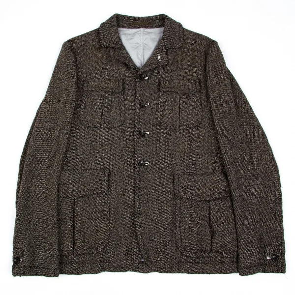 コムデギャルソンオムCOMME des GARCONS HOMME 製品洗いツイードサファリジャケット ミックス茶M