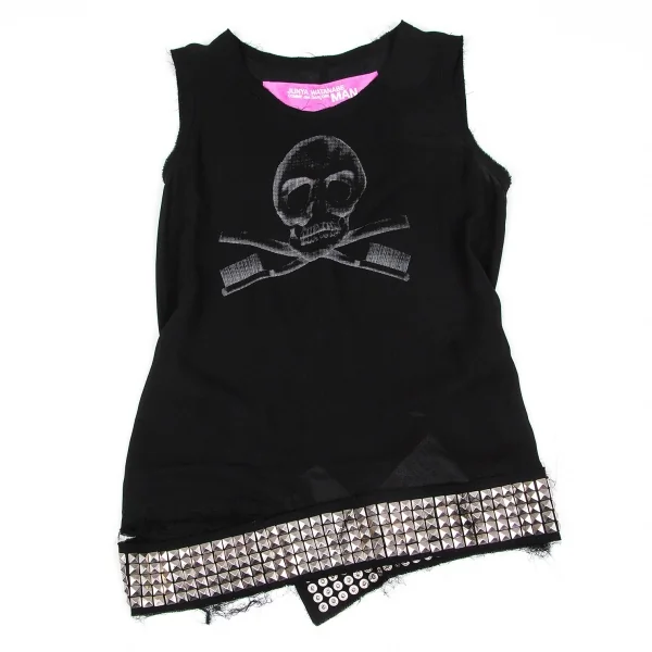 ジュンヤワタナベマンピンク コムデギャルソンJUNYA WATANABE MAN PINK COMME des GARCONS スタッズ装飾スカルプリントタンクトップ 黒白シルバーS