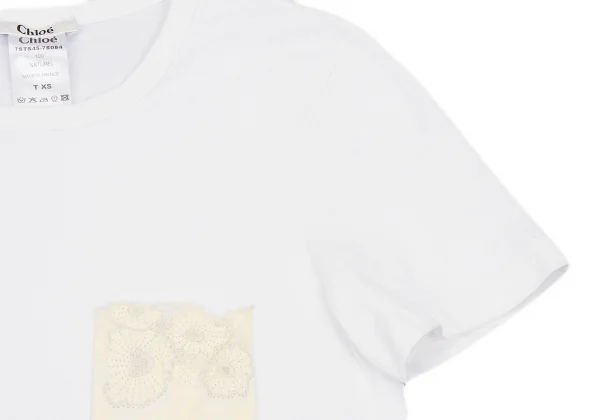 クロエChloe フラワー刺繍ポケットTシャツ 白XS