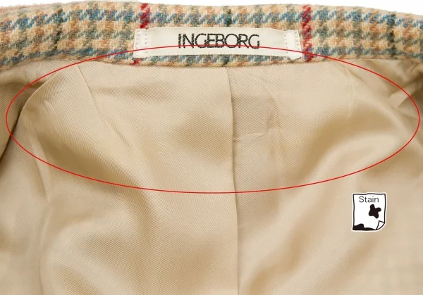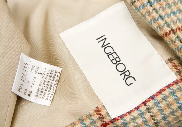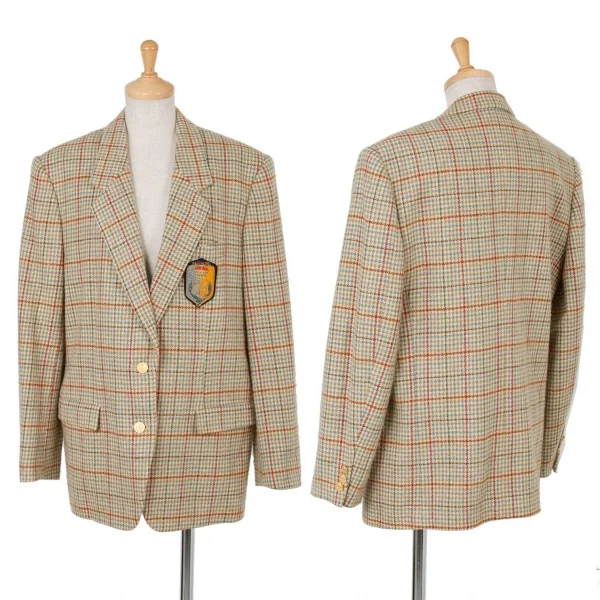 【SALE】インゲボルグINGEBORG ガンクラブチェックエンブレムジャケット ベージュ水色茶他M位