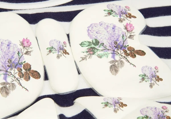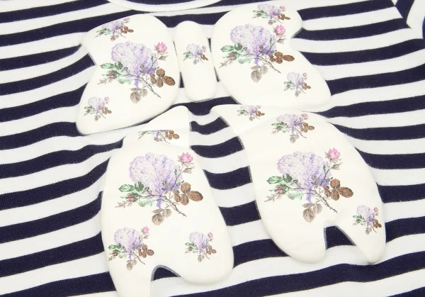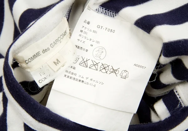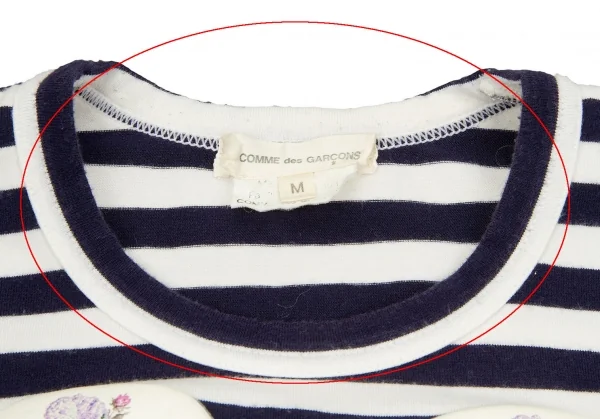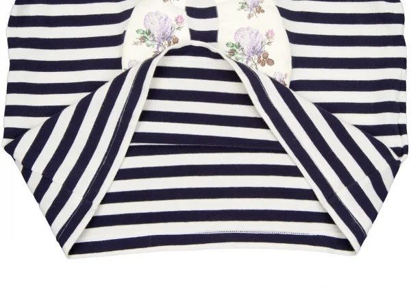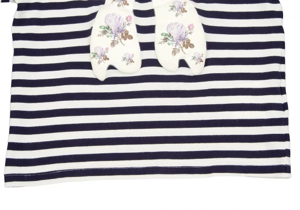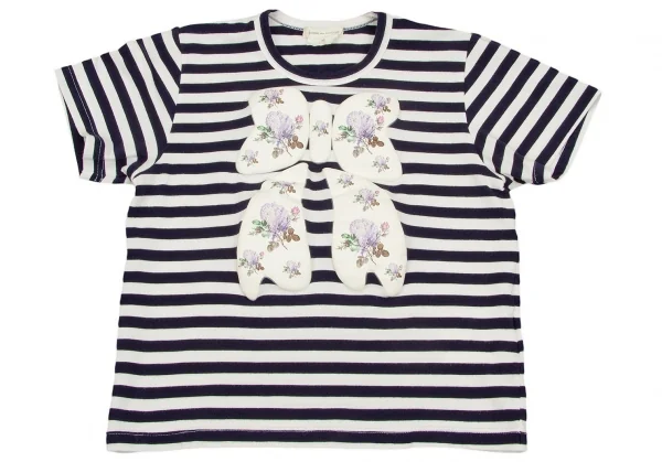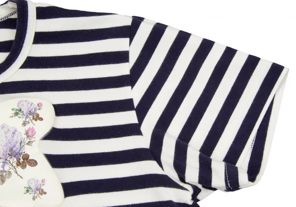 コムデギャルソンCOMME des GARCONS フラワーリボンプリントボーダーTシャツ 白紺M位