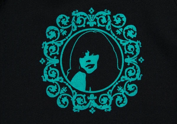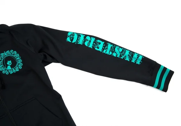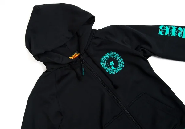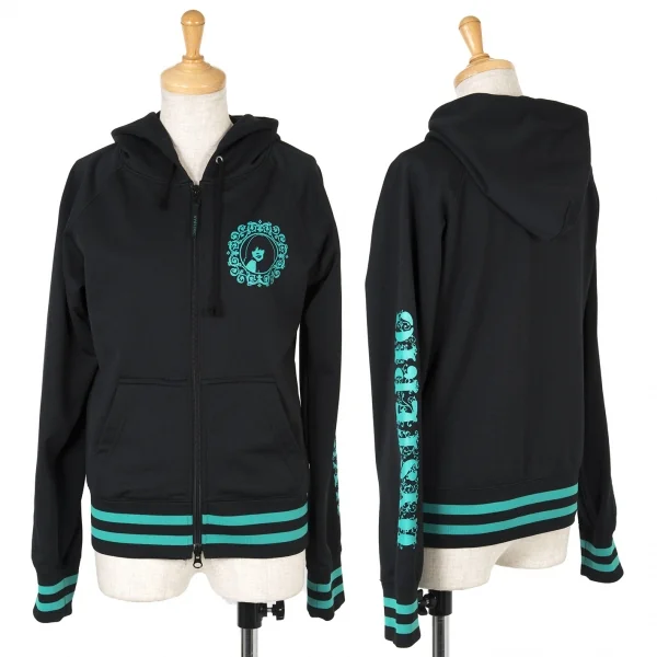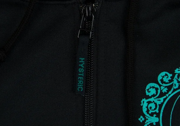 ヒステリックグラマーHYSTERIC GLAMOUR プリントジップフードパーカー 黒エメラルドグリーンF