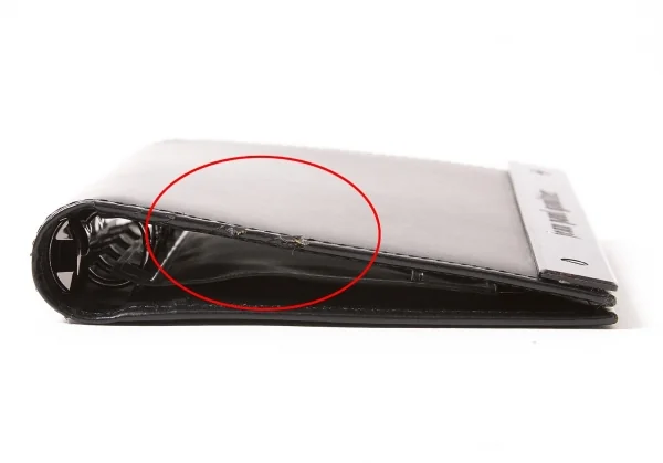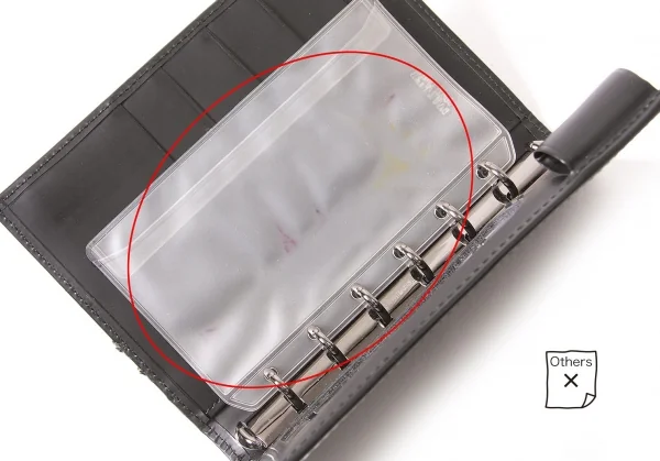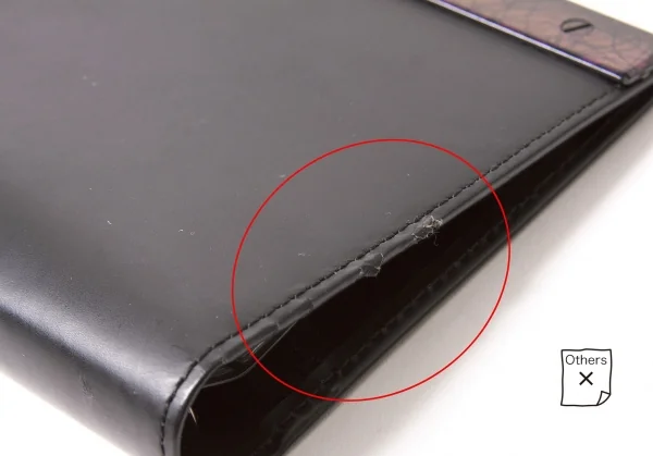 淵にダメージ、内側の袋に色移りがあります(画像参照)。その他目立った汚れ、キズ等なくいい状態です。