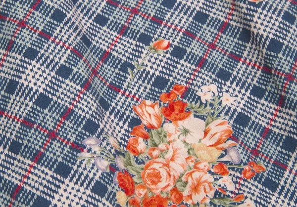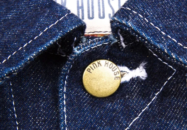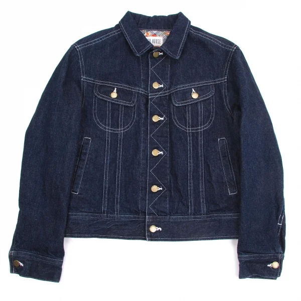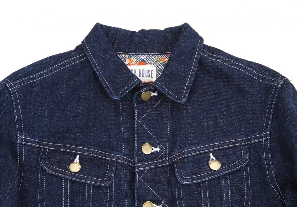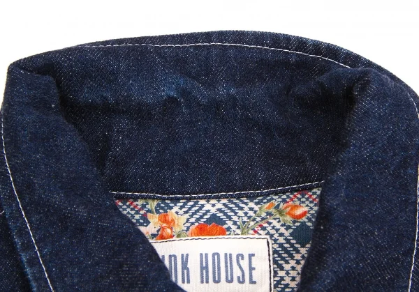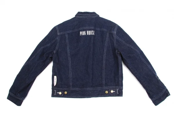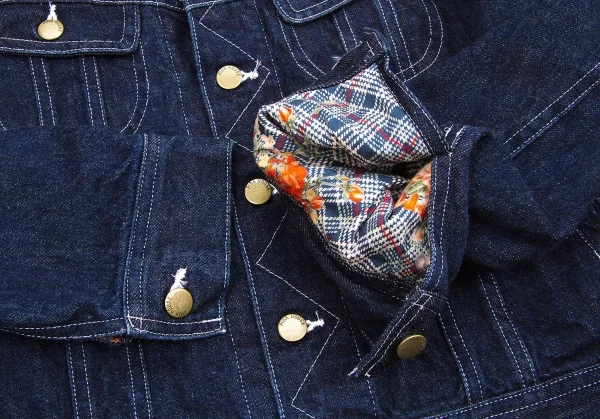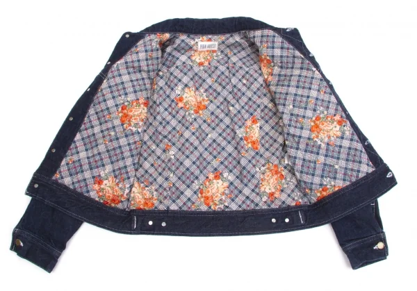 ピンクハウスPINK HOUSE 裏地フラワープリントデニムジャケット インディゴオレンジ他M位
