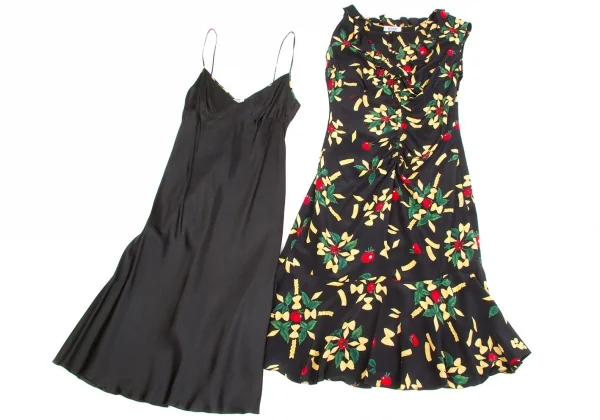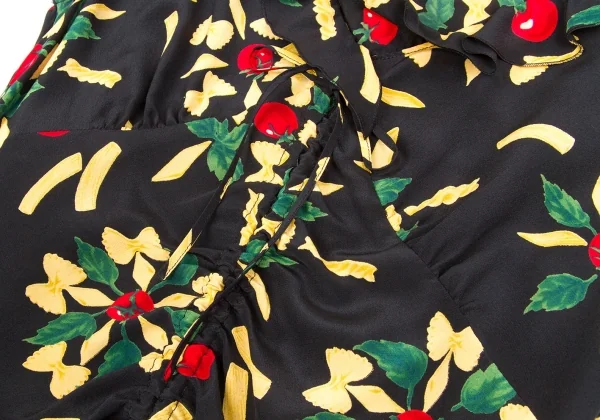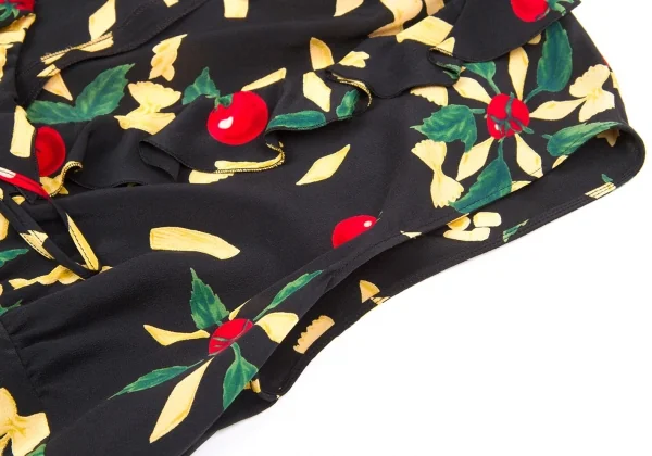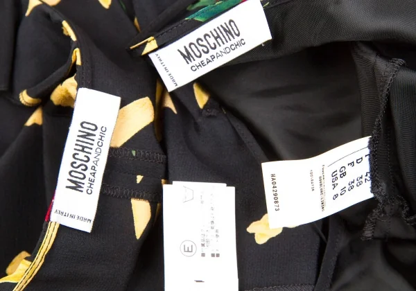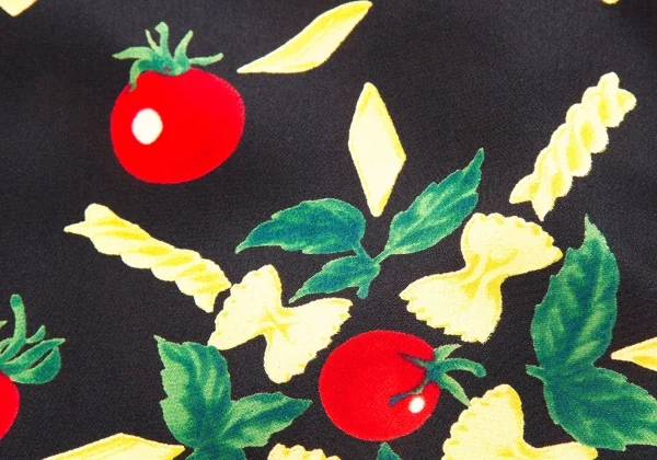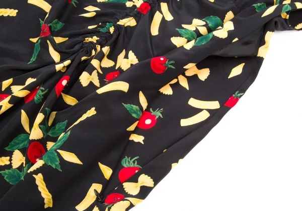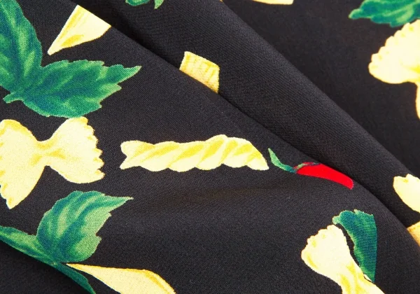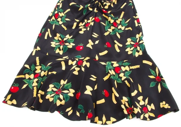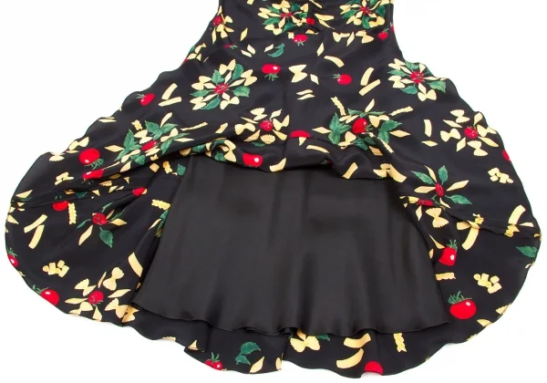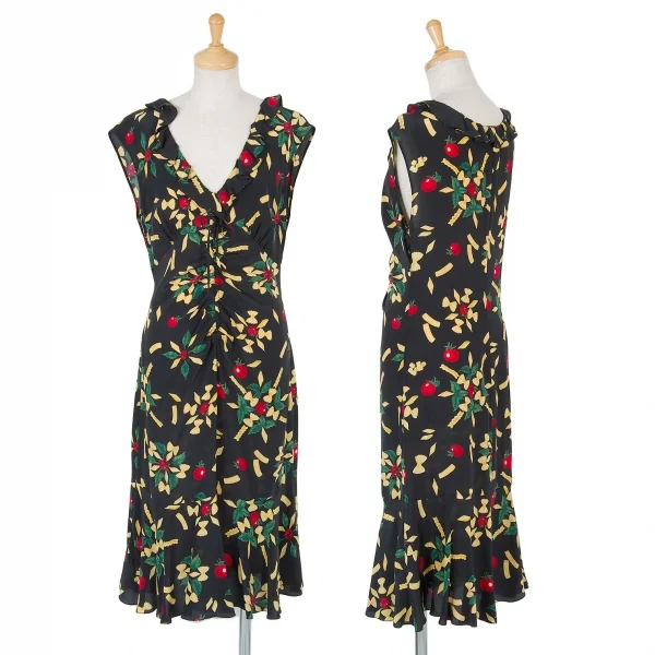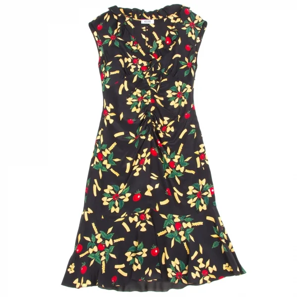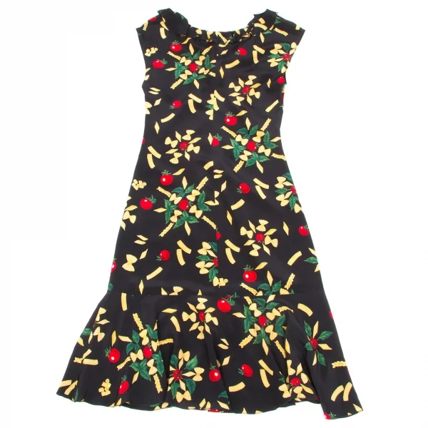 モスキーノ チープアンドシックMOSCHINO cheap&chic ベジタブル&パスタプリントシルクワンピース 黒淡黄赤緑38