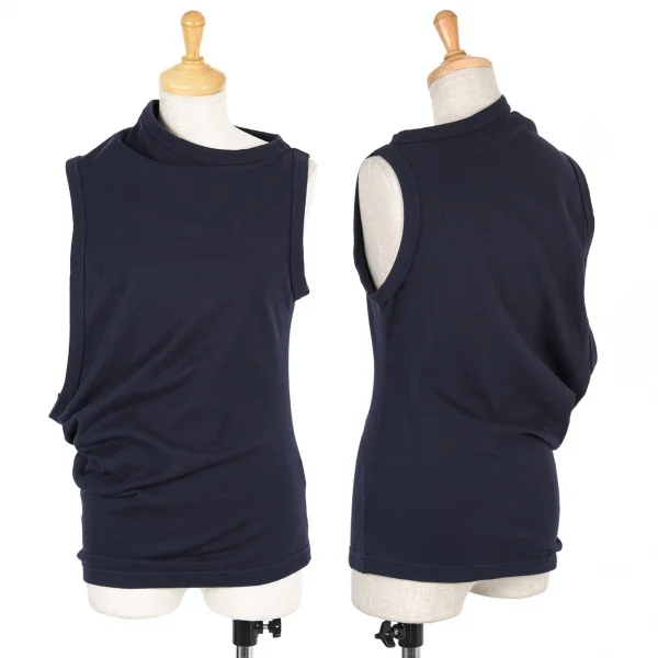 ヨウジヤマモトファムYohji Yamamoto FEMME 天竺アシンメトリーデザインノースリーブ 紺3