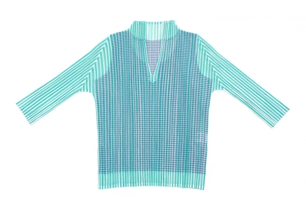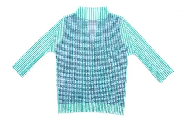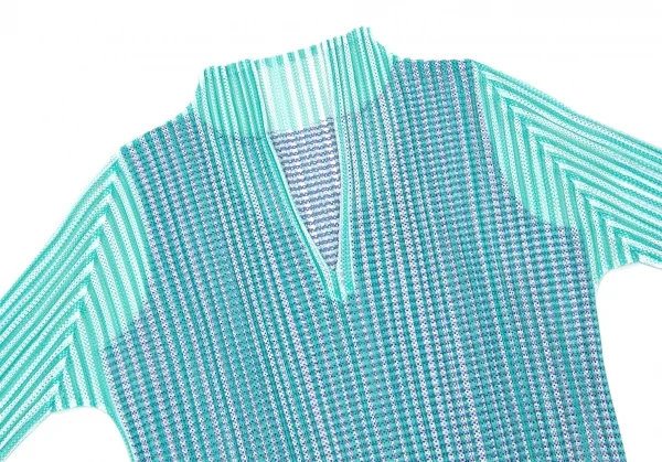 プリーツプリーズPLEATS PLEASE メッシュチェックプリントプリーツカットソー エメラルドグリーン他3