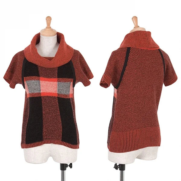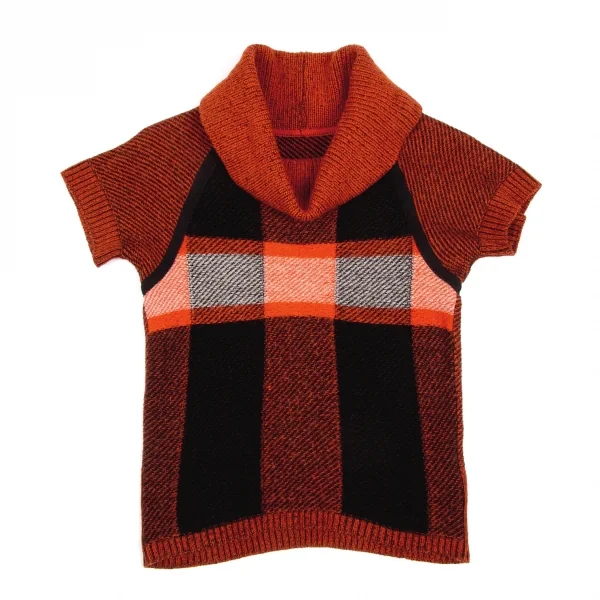 【SALE】ヒロココシノ トランクHIROKO KOSHINO TRUNK タートルラグラン半袖ニットトップス レンガ黒他38