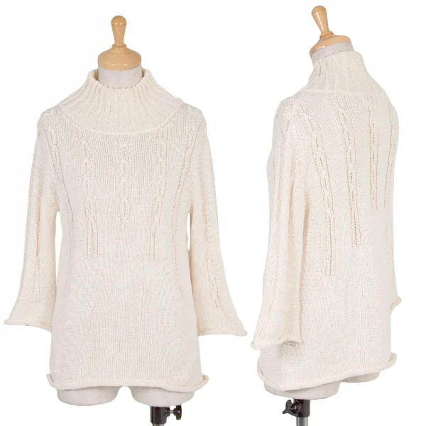 ヨウジヤマモトノアールYohji Yamamoto NOIR ケーブルハイネックニット 生成りM位