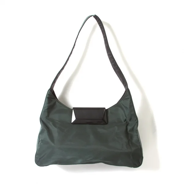 プラダPRADA フック留めナイロンショルダーバッグ 緑黒
