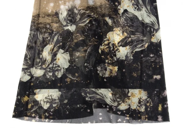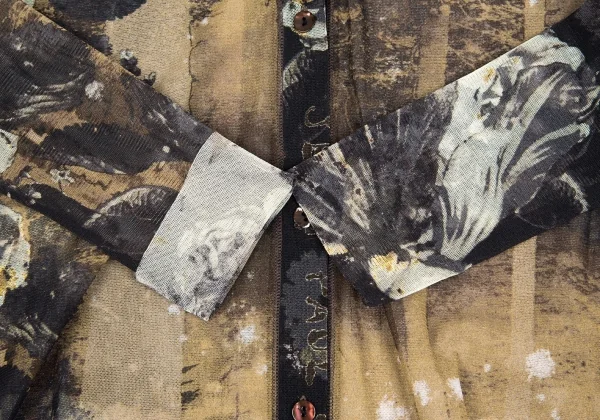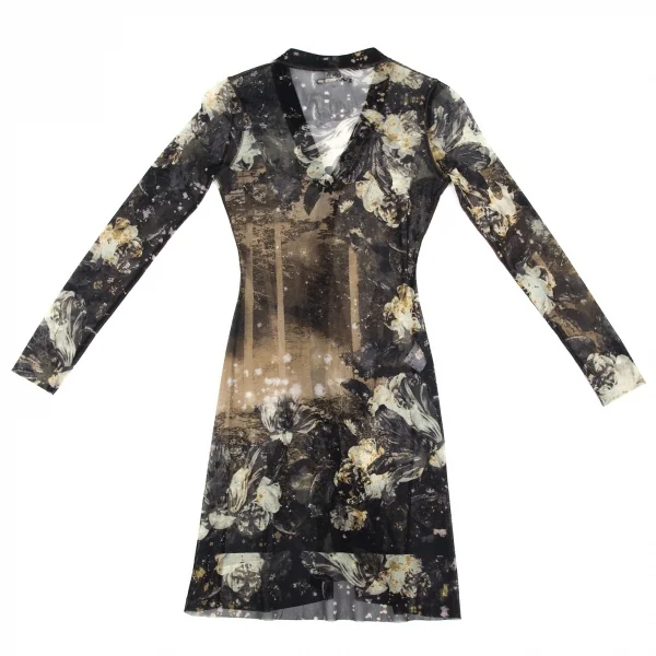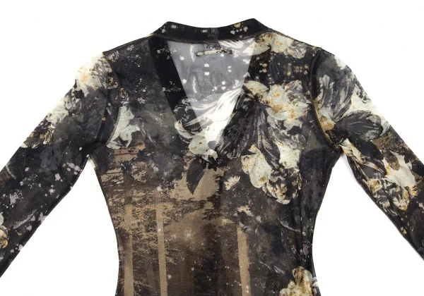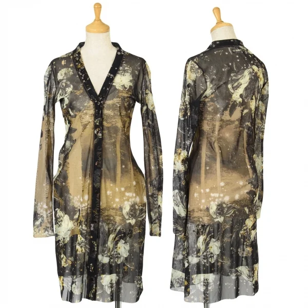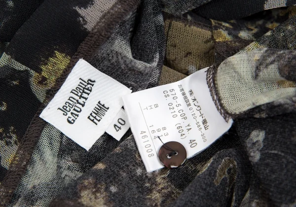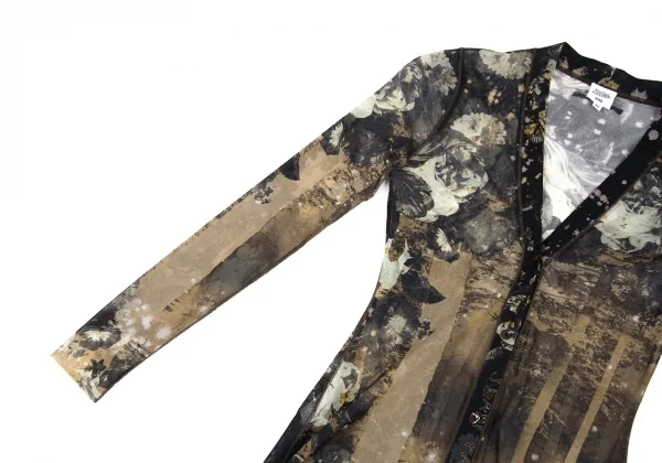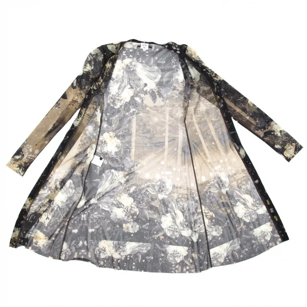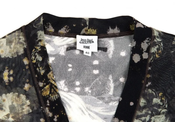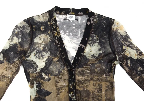 ジャンポールゴルチエファムJean Paul GAULTIER FEMME フラワープリントパワーネットロングカーディガン カーキ黒40