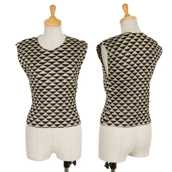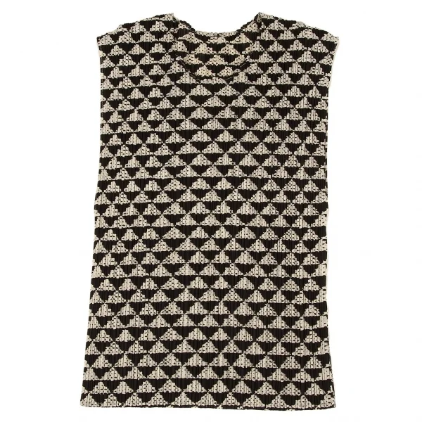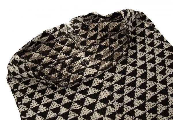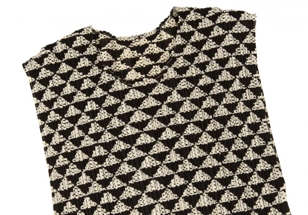 プリーツプリーズPLEATS PLEASE プリーツトライアングルプリントセットアップ 黒アイボリー3/M位