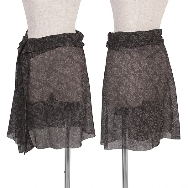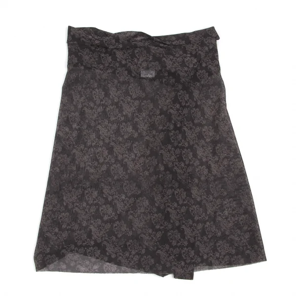 イッセイミヤケISSEY MIYAKE ダマスクプリントシースルースカート ベージュチャコール2