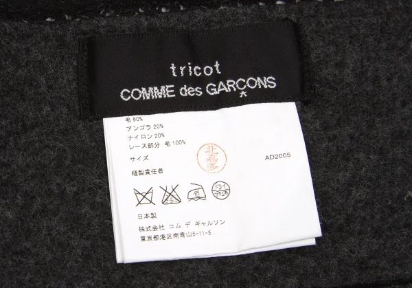 【SALE】トリココムデギャルソンtricot COMME des GARCONS アンゴラレース切り替えショール 杢グレー黒