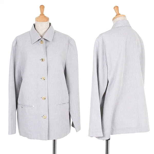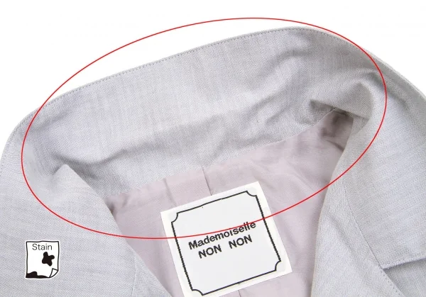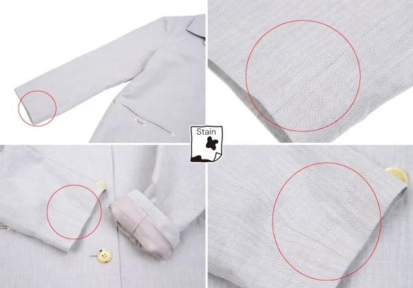 ジャケット 襟裏に薄汚れ、右袖先に薄シミあります。(写真参照)その他に目立ったシミ、汚れ、ほつれ等なくいい状態です。クリーニング済み