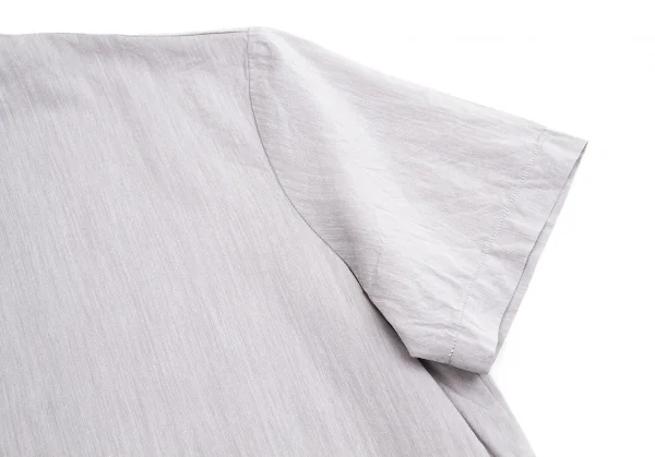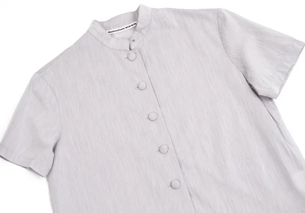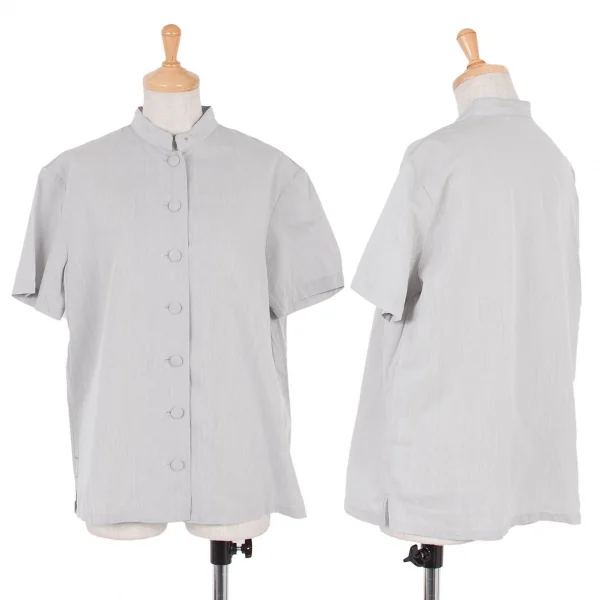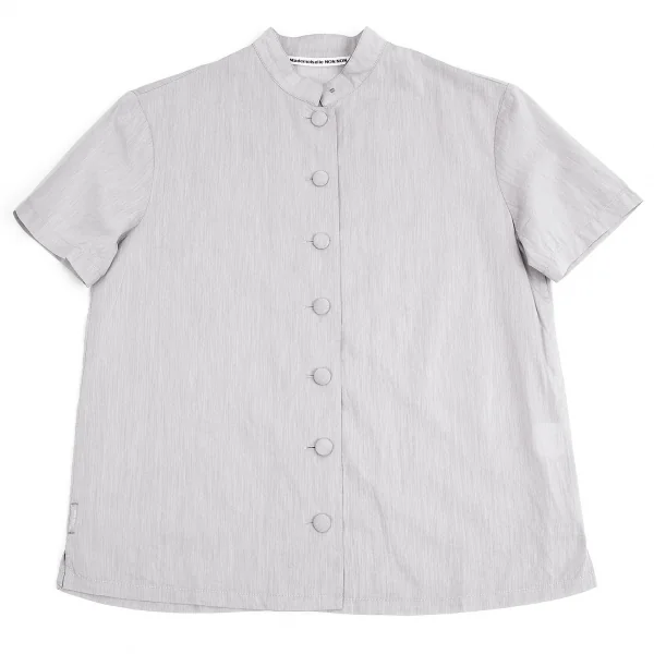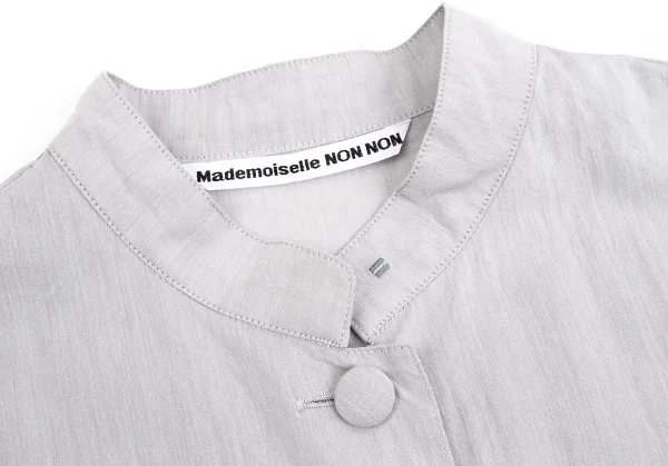 【SALE】マドモアゼルノンノンMademoiselle NON NON コットンキュプラバンドカラー半袖シャツ ライトグレーM位