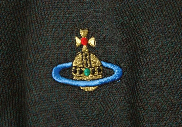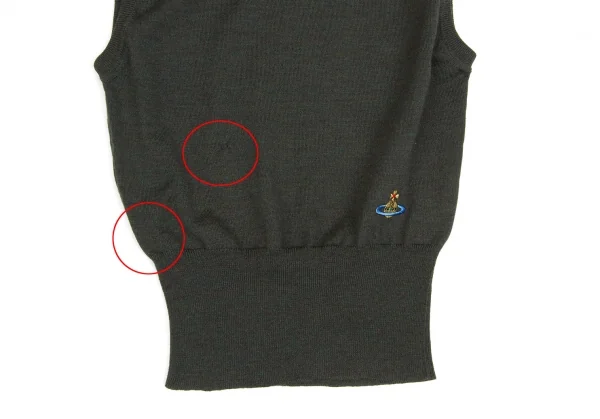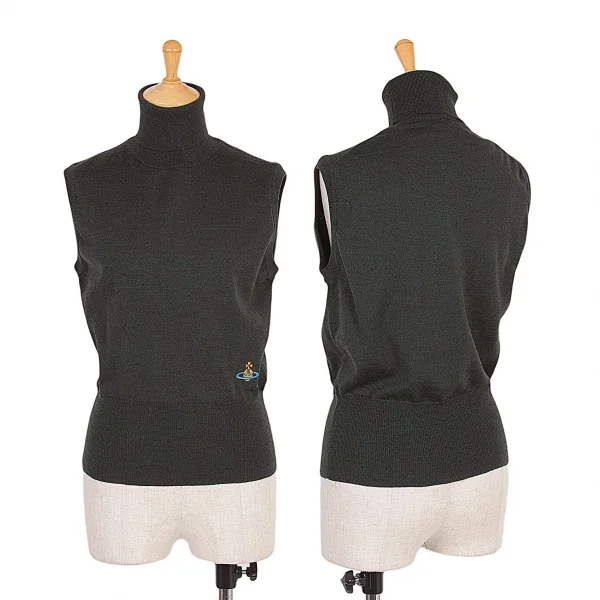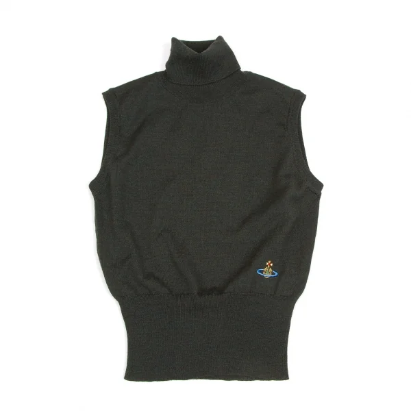 ヴィヴィアンウエストウッド レッドレーベルVivienne Westwood Red Label オーブ刺繍タートルネックノースリーブニット 濃杢グリーンM