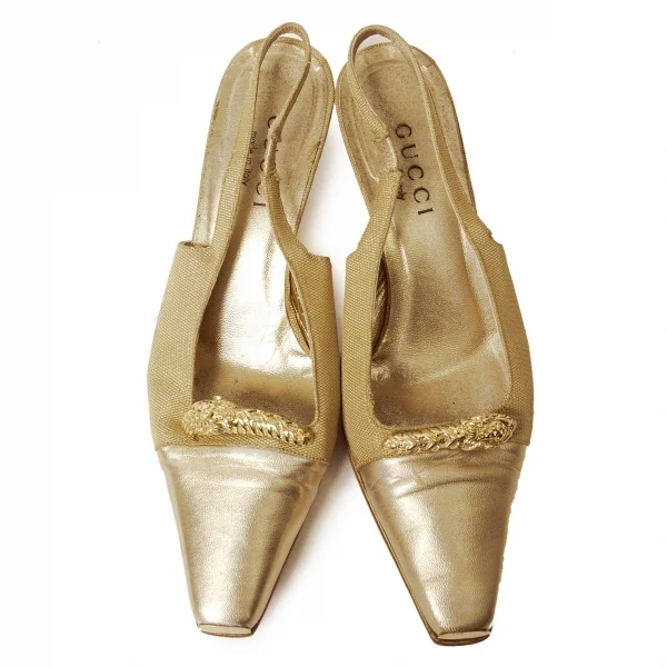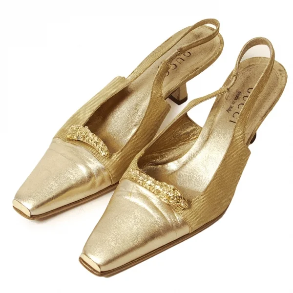 【最終値下げ】グッチGUCCI 装飾メタリックミュール ゴールド35(23位)