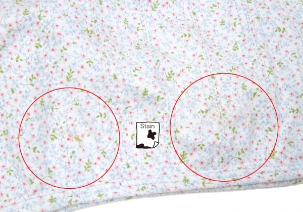 前身頃裾部分にシミがあります(写真参照)。その他に目立ったシミ、汚れ、ほつれ等なくいい状態です。クリーニング済み