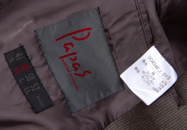 【最終値下げ】パパスPapas コットンカシミアコーデュロイジャケット グレー48M
