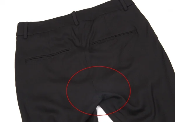 糸つれ、股アタリ小があります(写真参照)。その他に目立ったシミ、汚れ、ほつれ等なくいい状態です。クリーニング済み