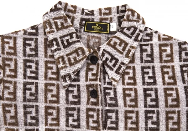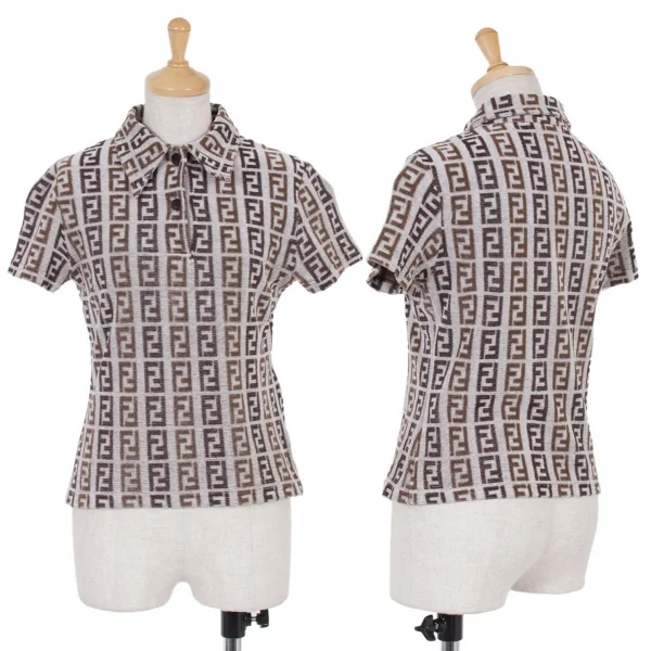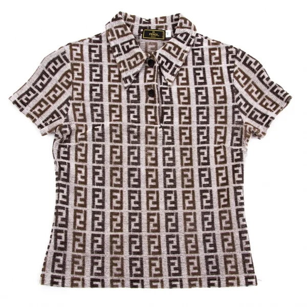 フェンディFENDI ズッカ柄パイルポロシャツ 茶杢グレー40